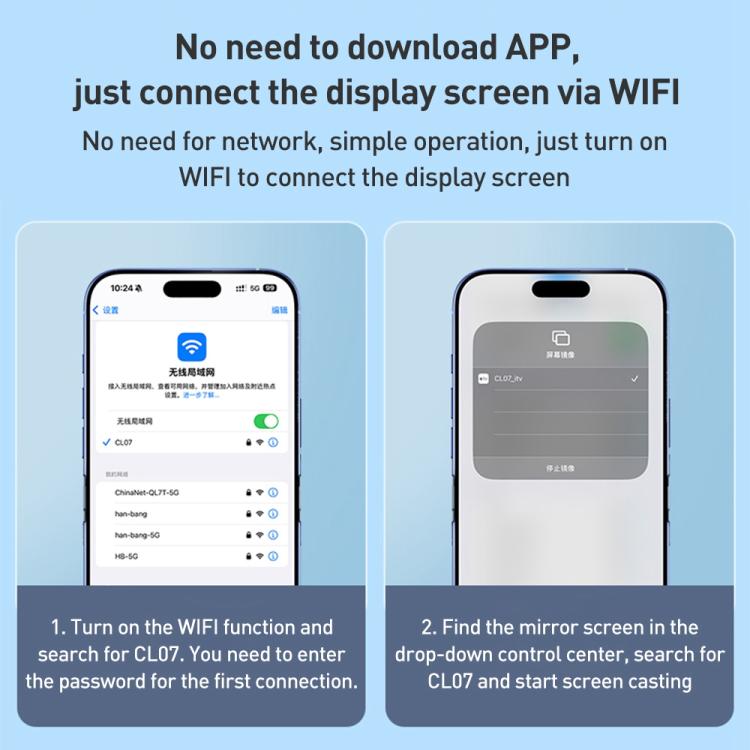 3. No app download required—simply connect to the display screen via WiFi for easy use.