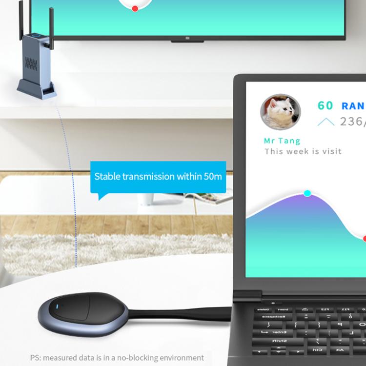 2. Plug and play, easy to use: No network WIFI, Bluetooth, APP, no driver required, independent HDMI transmitter, plug and play, so you can avoid the trouble of configuration, easy to use, so that meetings can be carried out in a more efficient way.