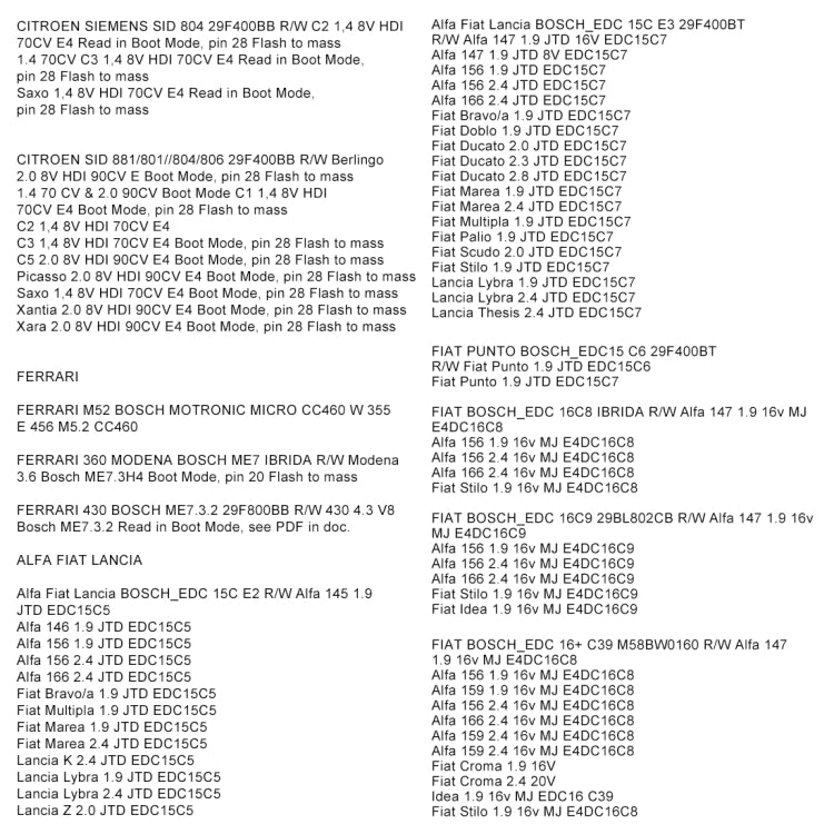 2. Working on EDC16,EDC15, MEx.x ,DELCO and many more engine4s ecu. It is compatible with the newest modern diesel TDi, HDi, JTD, and petrol cars.