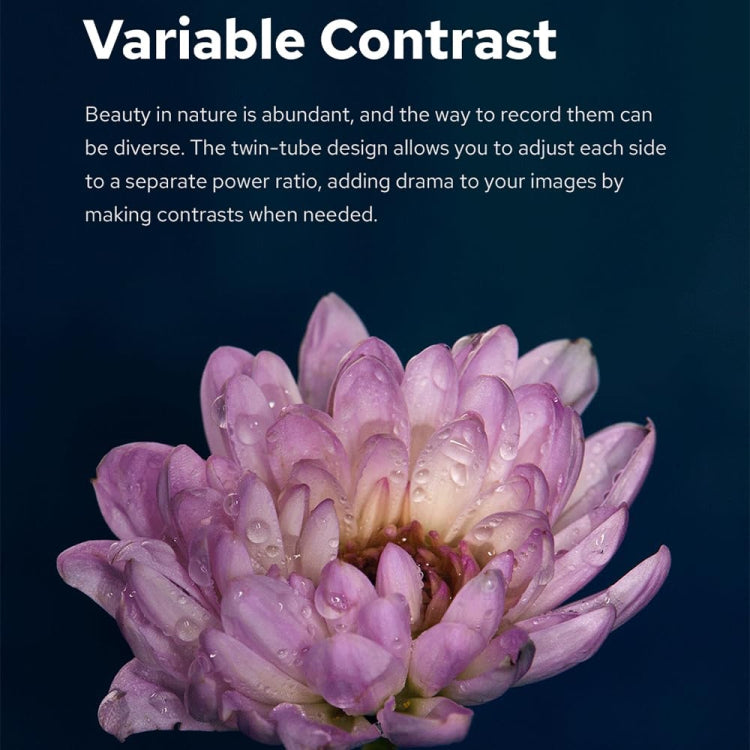3. Godox includes 49, 52, 55, 58, 62, 67, 72, and 77mm adapter rings to ensure wide compatibility with most lenses. With a guide number of 45.9 ft at ISO 100, the MF-R76C provides detailed, wrap-around lighting for your close-ups. The twin-tube design also allows users to set each side to different power ratios, enabling higher contrast lighting when desired.