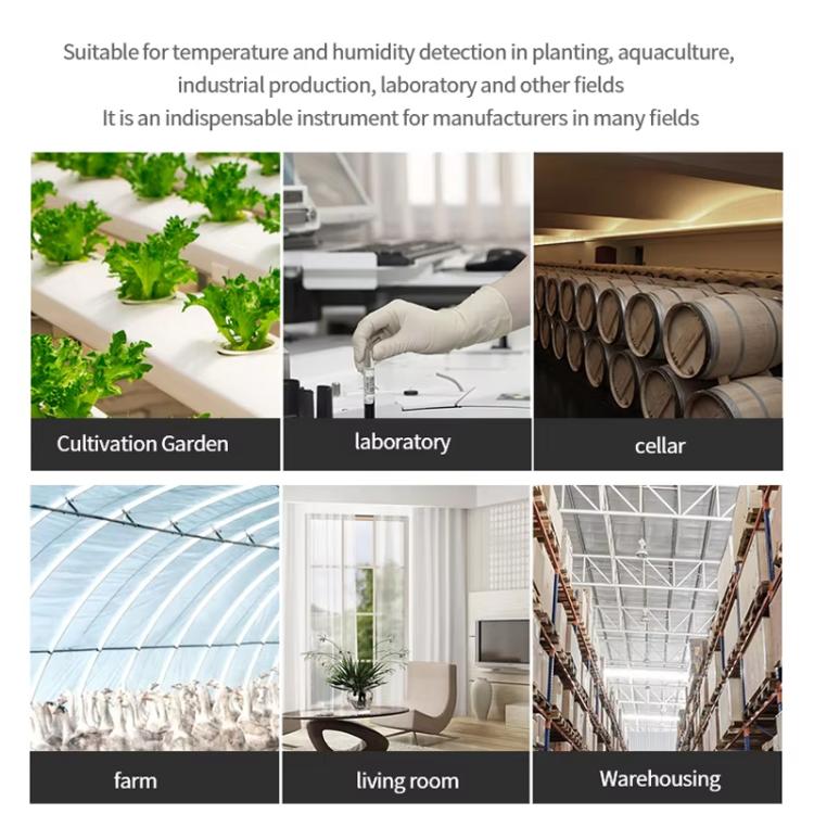 1. Suitable for temperature and humidity monitoring in the fields of planting, breeding, industrial production, laboratories, etc.