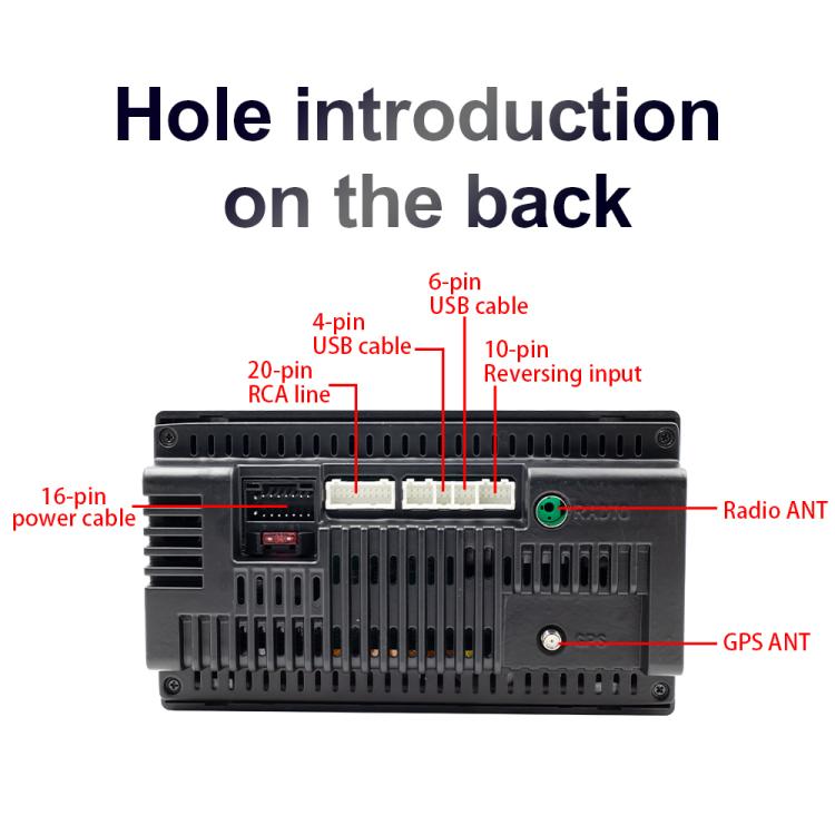 1. Support mobile phone interconnection, reversing image, play video warning, steering wheel control, video output, offline map, driving recorder, GPS navigation, reset button