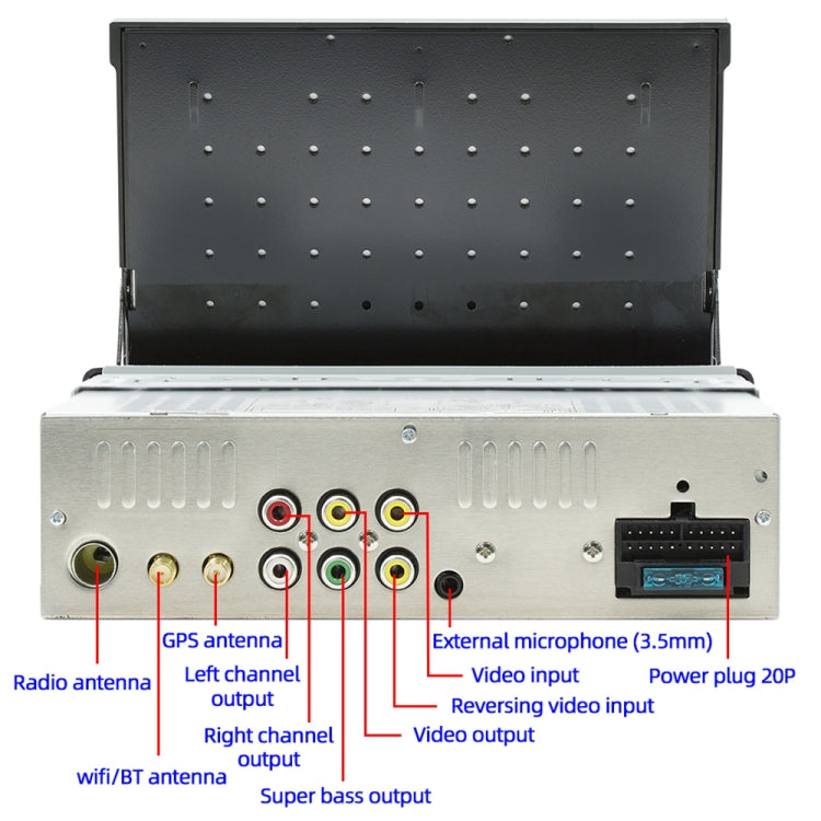 RCA terminal introduction: 2 audio outputs, 2 audio inputs, 2 video inputs, 1 reversing input, 1 video output, 1 subwoofer output