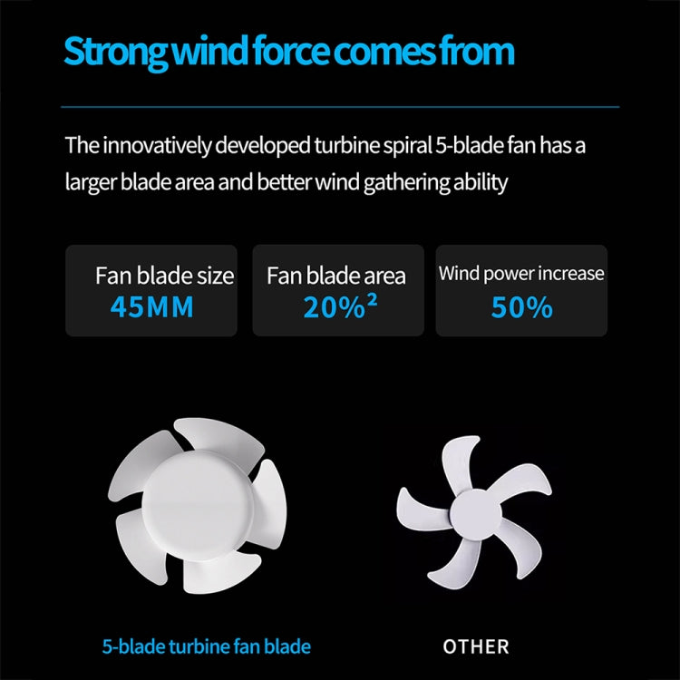 5. The turbo spiral 5-blade fan has a larger fan area and more wind gathering than the conventional ordinary fan blades