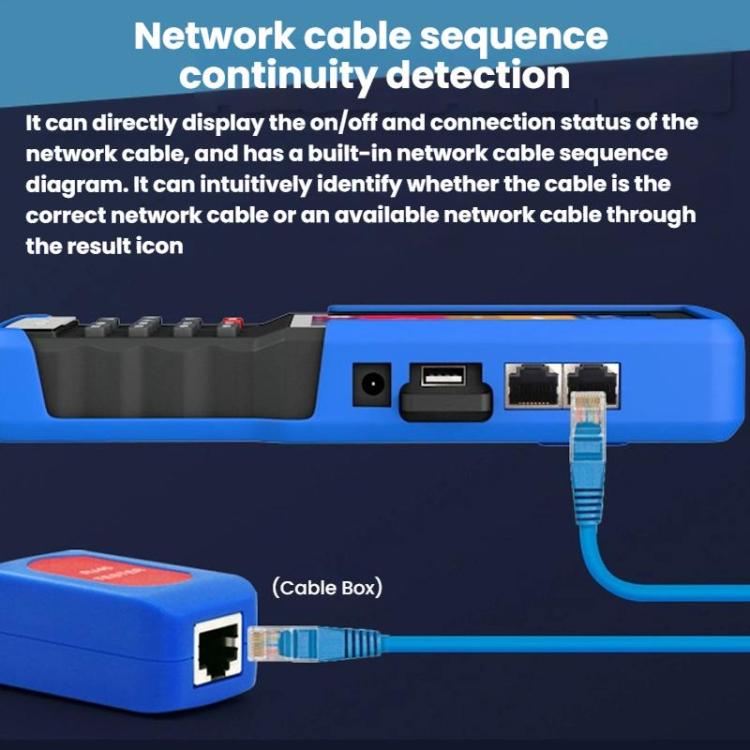 5. Network cable line sequence continuity detection, which can directly display the continuity of the network cable and the connection status. It has a built-in network cable line sequence diagram, allowing for intuitive identification of whether the cable is correctly wired or a usable cable based on the result icon