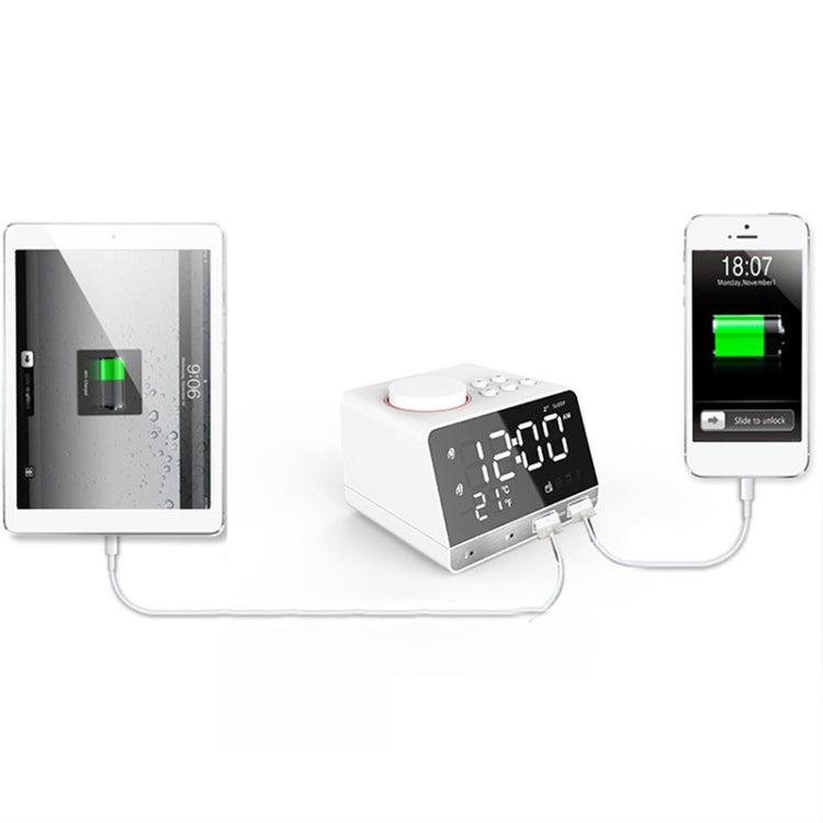 K11 Bluetooth Alarm Clock Speaker Creative Digital Music Clock Display Radio with Dual USB Interface, Support U Disk / TF Card / FM / AUX, UK Plug