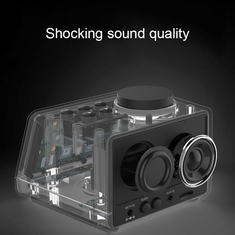 1. K11 Bluetooth alarm clock subwoofer speaker has Bluetooth, TF card, U disk, AUX audio cable connection to play music.