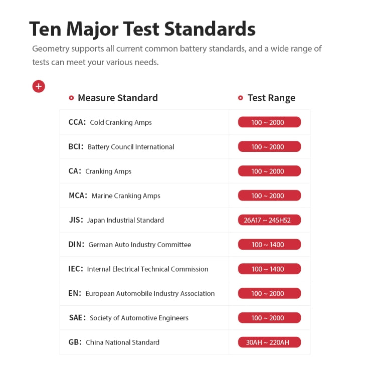 11. Test range: 6V/12V (100-2000CCA)