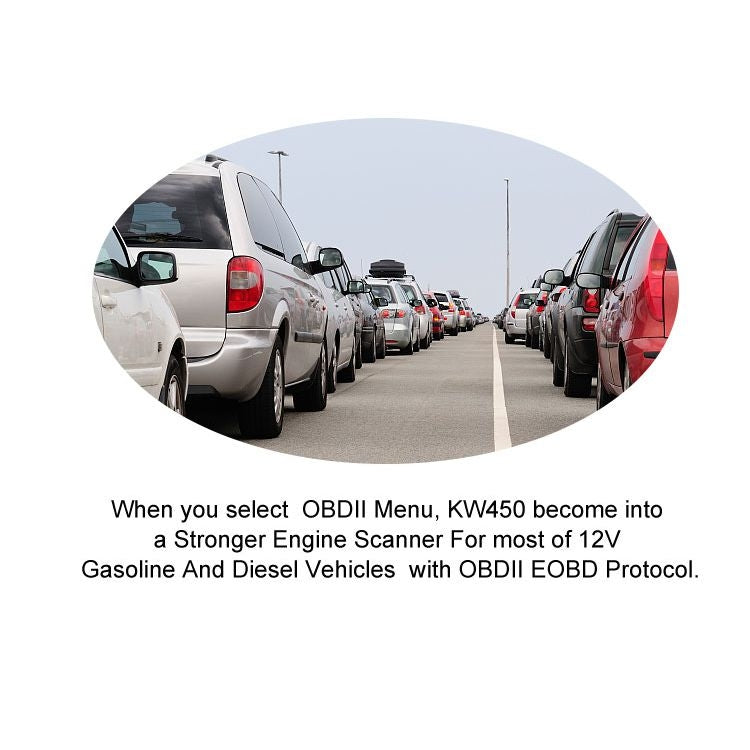 8. When you select OBDLL Menu , KW450 become intoa Stronger Engine Scanner For most of 12VGasoline And Diesel Vehicles with OBDII EOBD Protocol