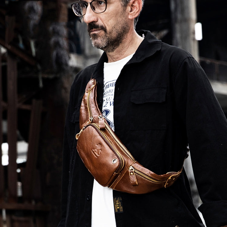 LAOSHIZI Vintage Leather Waist Bag Shoulder Crossbody Bag Shoulder Chest Bag For Men