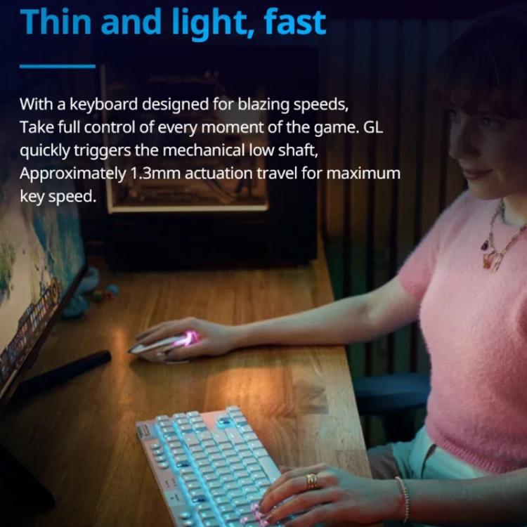 2. G915 TKL features high performance low-profile GL mechanical switches that provide all the speed, accuracy, and performance of traditional switches—at half the height. White colorway comes in GL Tactile and the black colorway comes in three2White colorway only available in GL Tactile switch type switch types: