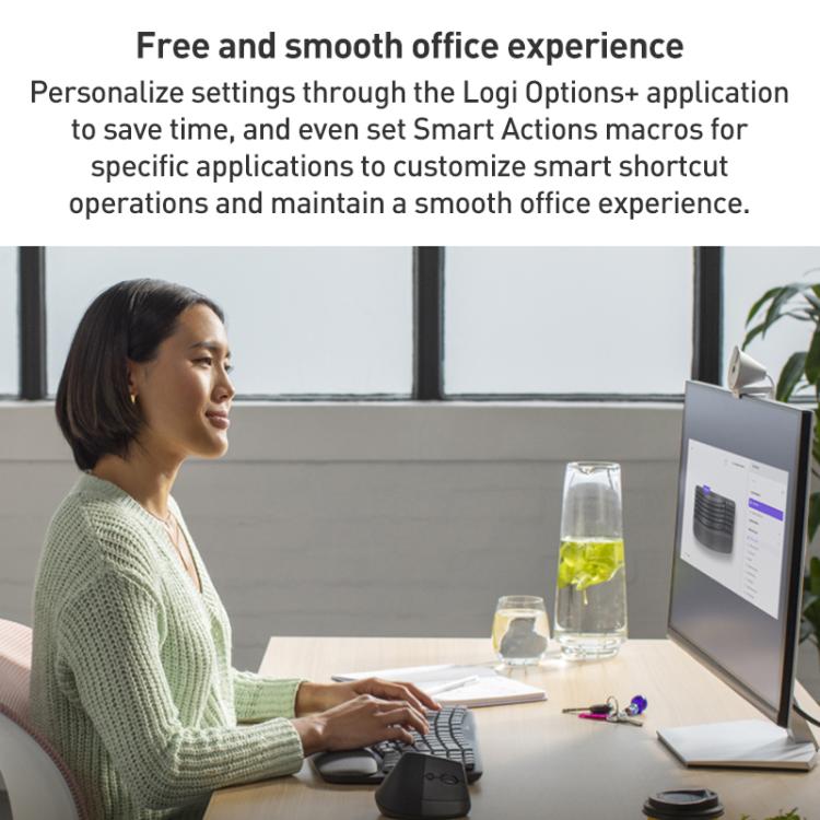 3. Smoother days, your way with Logi Options+ App: Stay relaxed with fluid, natural typing, and customizable keys using Logi Options+ App. You can even customize your shortcuts for specific apps.