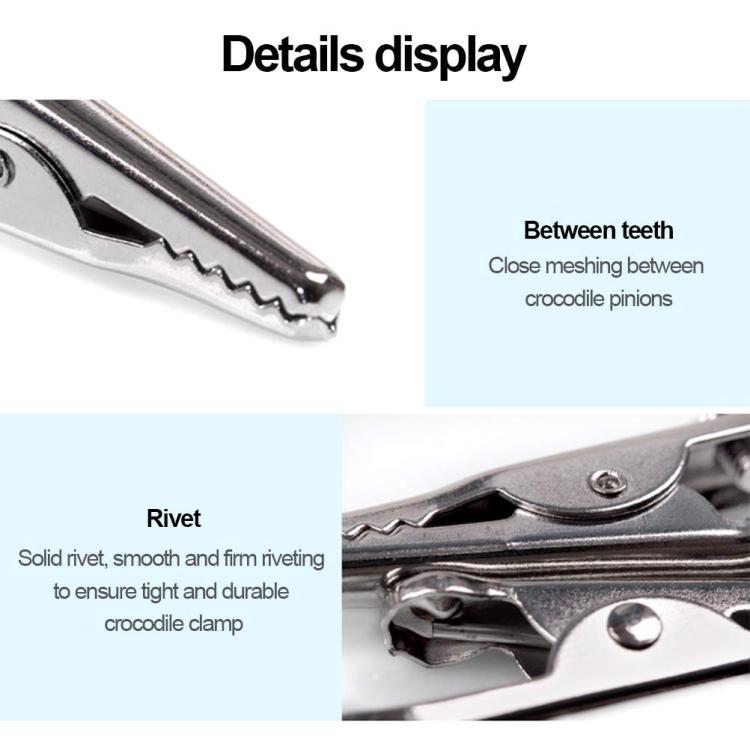 2. The alligator clip is made of nickel plating, with a smooth surface, strong and durable