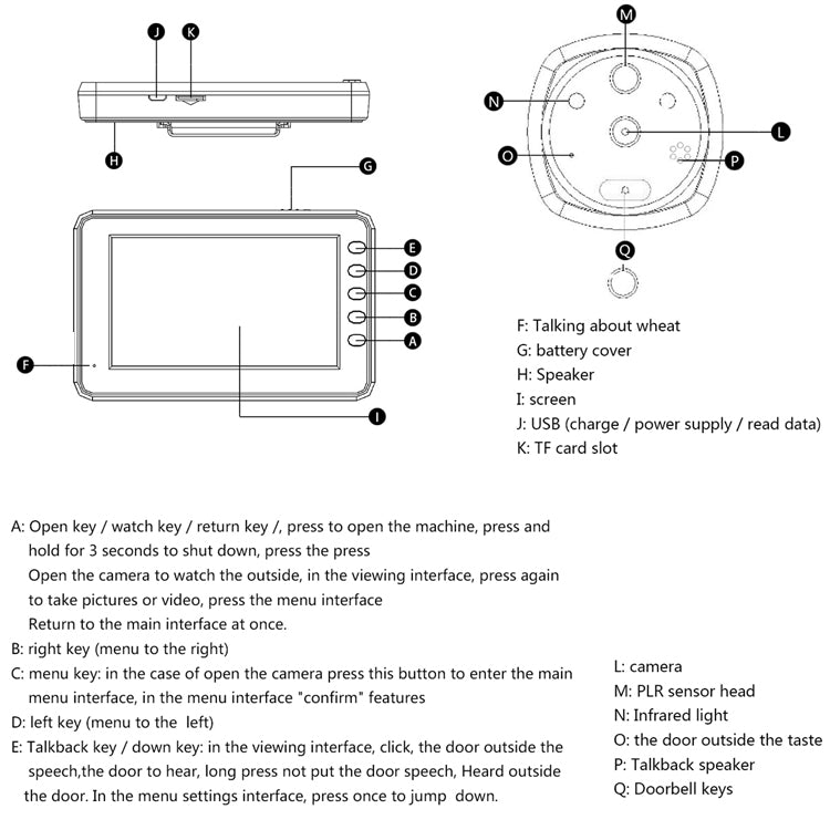 M4300A 4.3 inch Display Screen 3.0MP Camera Video Smart Doorbell, Support TF Card (32GB Max) & Motion Detection & Infrared Night Vision
