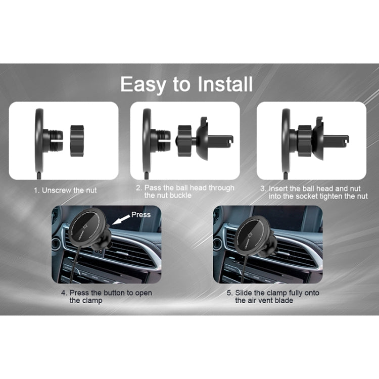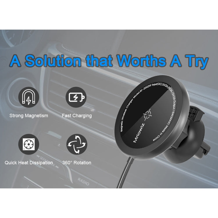 Mriowiz M-2002W 15W 360-degree Rotating MagSafe Magnetic Car Wireless Charger for iPhone 12 Series, with USB + USB-C / Type-C Data Cable, Cable Length: 1m