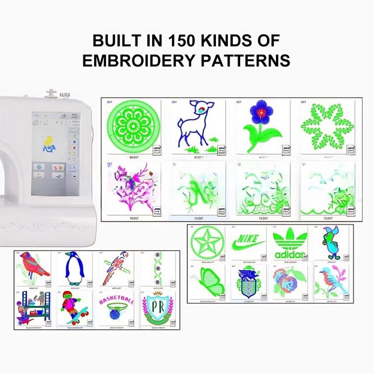 1. Built-in 150 kinds of embroidery patterns, 3 kinds of English fonts