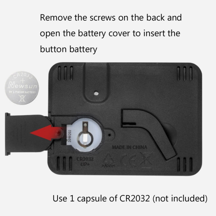 9. Remove the screws on the back and open the battery cover to insert the button battery