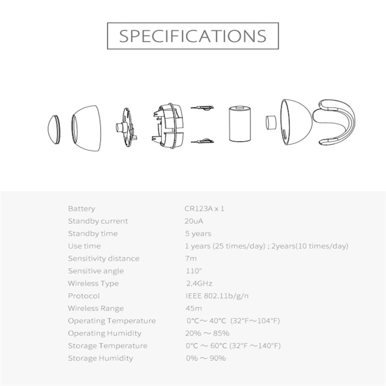 2.Battery: CR123A x 1 Standby time:2 years
