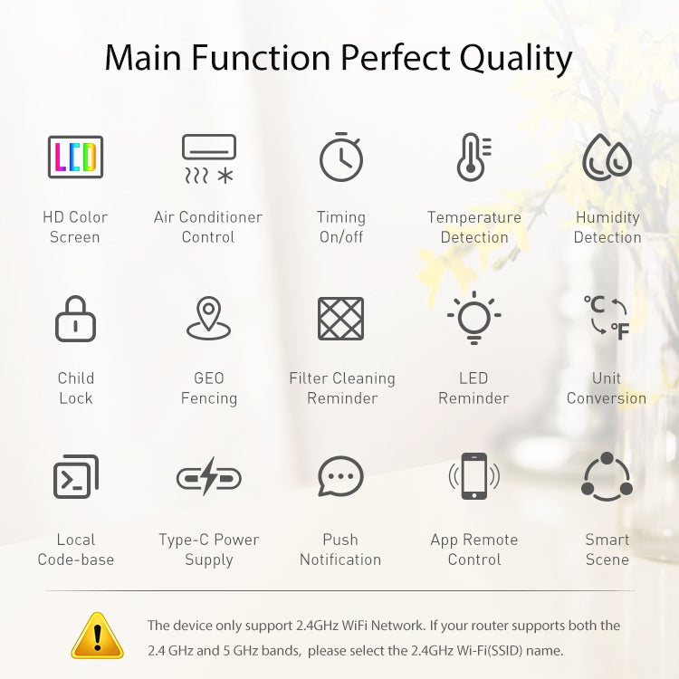3. Functions: local offline control, child lock, APP remote control, set scheduled tasks, filter cleaning tips, address fence, voice control, etc.