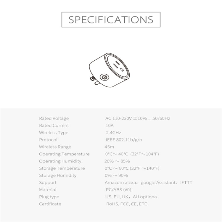 5. Wifi distance:45m 6. Free app:Tuyasmart or Smart Life.