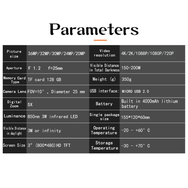 8. Weak light or daytime observation distance: 3 meters - infinity