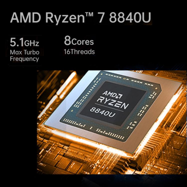2. AMD Ryzen 7 8840U CPU, 8 cores 16 threads, high performance, run fast, and operate smoothly.