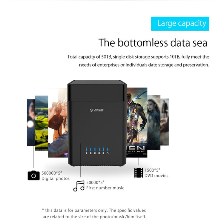 ORICO DS500C3 3.5 inch 5 Bay Magnetic-type USB-C / Type-C Hard Drive Enclosure with Blue LED Indicator