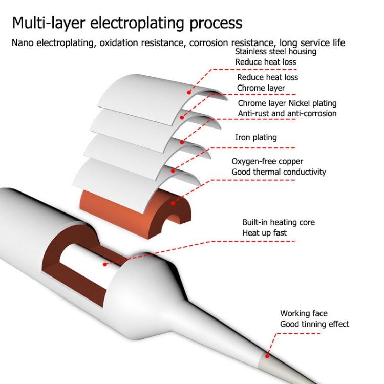 1. Lead-free environmentally friendly soldering iron tip, multi-layer electroplating, good anti-oxidation