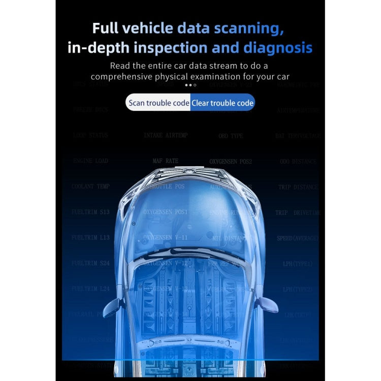 4. OBD mode display information: driving speed, engine speed, fuel consumption, water tank temperature, voltage, mileage measurement (word driving miles and single driving time, manual/automatic brightness adjustment, mile switching). Alarm: Overspeed alarm, high speed alarm, fatigue driving reminder, low voltage alarm, high water temperature alarm, engine failure alarm, and fault code elimination