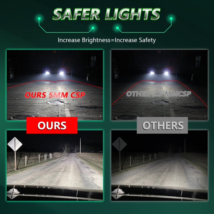 12. CSP 8760 LED chip, ultra-high brightness, service life up to 50,000 hours, each contrast reaches 120 6500K, luminous flux reaches 18,000 lumens per pair, brighter than holographic bulbs