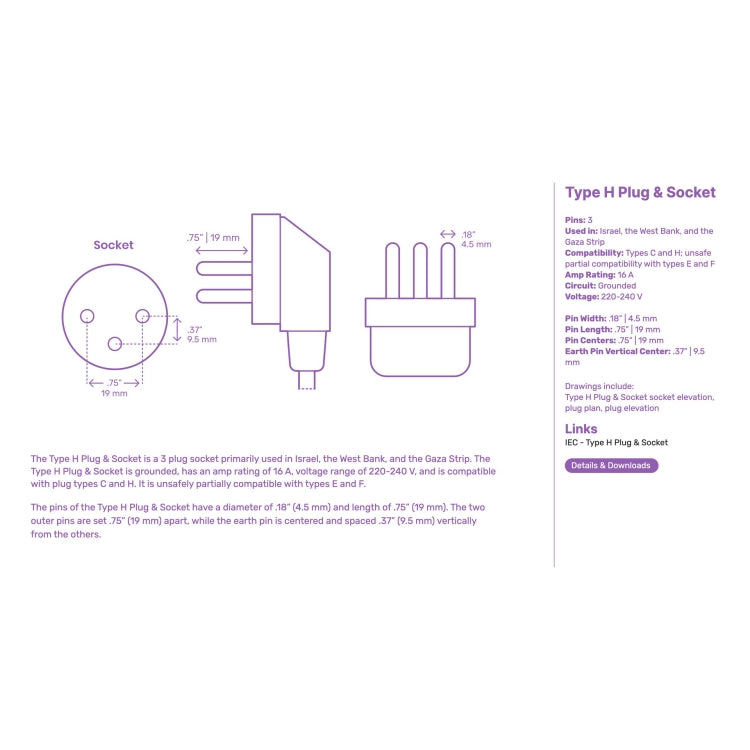 7. H-type plug and socket is a 3-plug socket, mainly used in Israel, West Bank and Gaza Strip