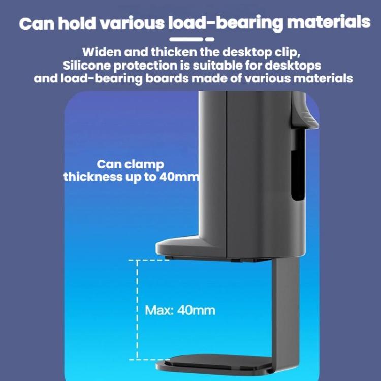 7. Widened and thickened desktop clamp, silicone protection suitable for various materials desktops and load-bearing boards, can clamp up to 40mm thick