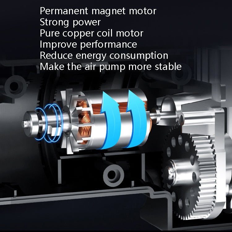 3. Permanent magnet motor, strong power, pure copper coil motor, improve performance, reduce energy consumption, and make the air pump more stable