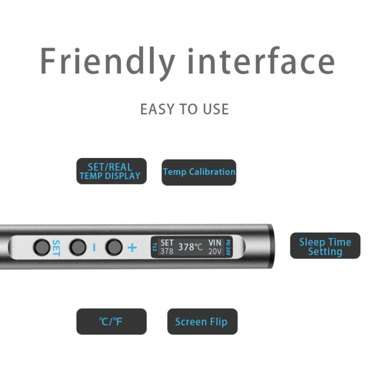3. Fast heat conduction dual-function iron tip with heating core, built-in ceramic heating element, fast heat conduction, smooth soldering