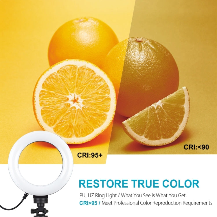 PULUZ 6.2 inch 16cm USB 3 Modes Dimmable LED Ring Vlogging Photography Video Lights + Pocket Tripod Mount Kit with Cold Shoe Tripod Ball Head