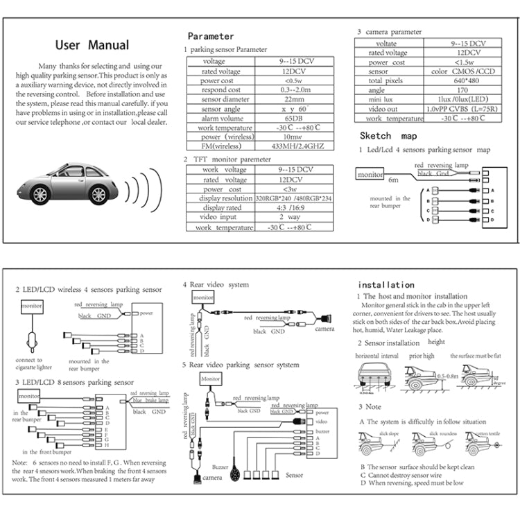 16.Alarm frequency: 1.6-2.0m: 0.5 HZ(slowness); 1.1-1.5m: 1 HZ(slowness); 0.6-1.0m: 3 HZ(commonly); 0-0.4m: BI----