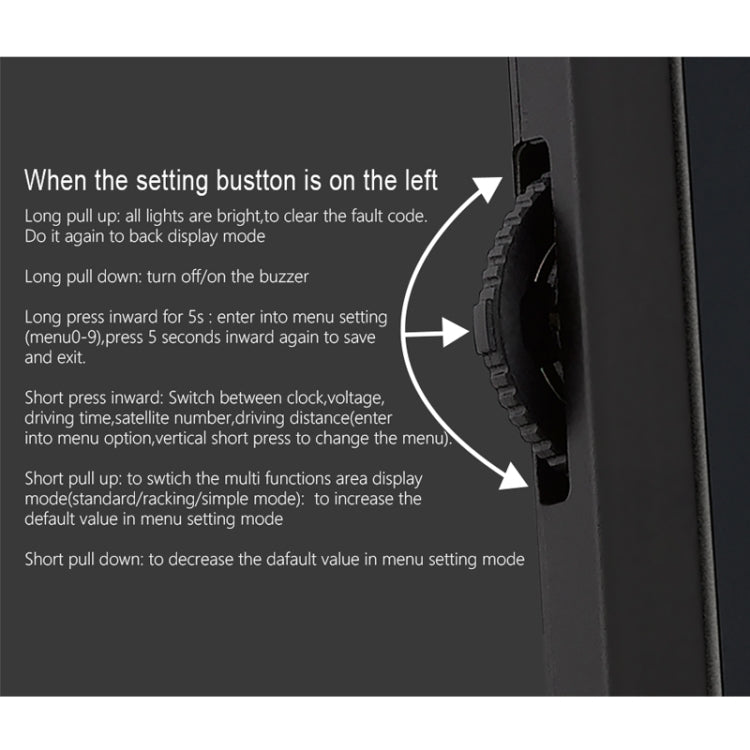 4. Display Information: speed, direction, time, kilometer, time display, number of satellites, altitude, kilometer-mile free switching