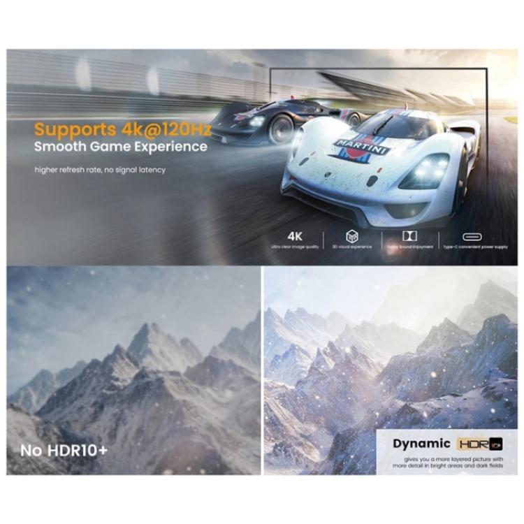 2.High-Performance Video and Audio:Supports resolutions up to 8K@60Hz, 4K@120Hz, and 1080P@240Hz with 4:4:4 8-bit color. Compatible with VRR, HDR 10, Dolby Vision, and 3D. Audio support includes ARC, Dolby Atmos, DTS X, Dolby True HD, DTS-HD Master Audio, and PCM 7.1.