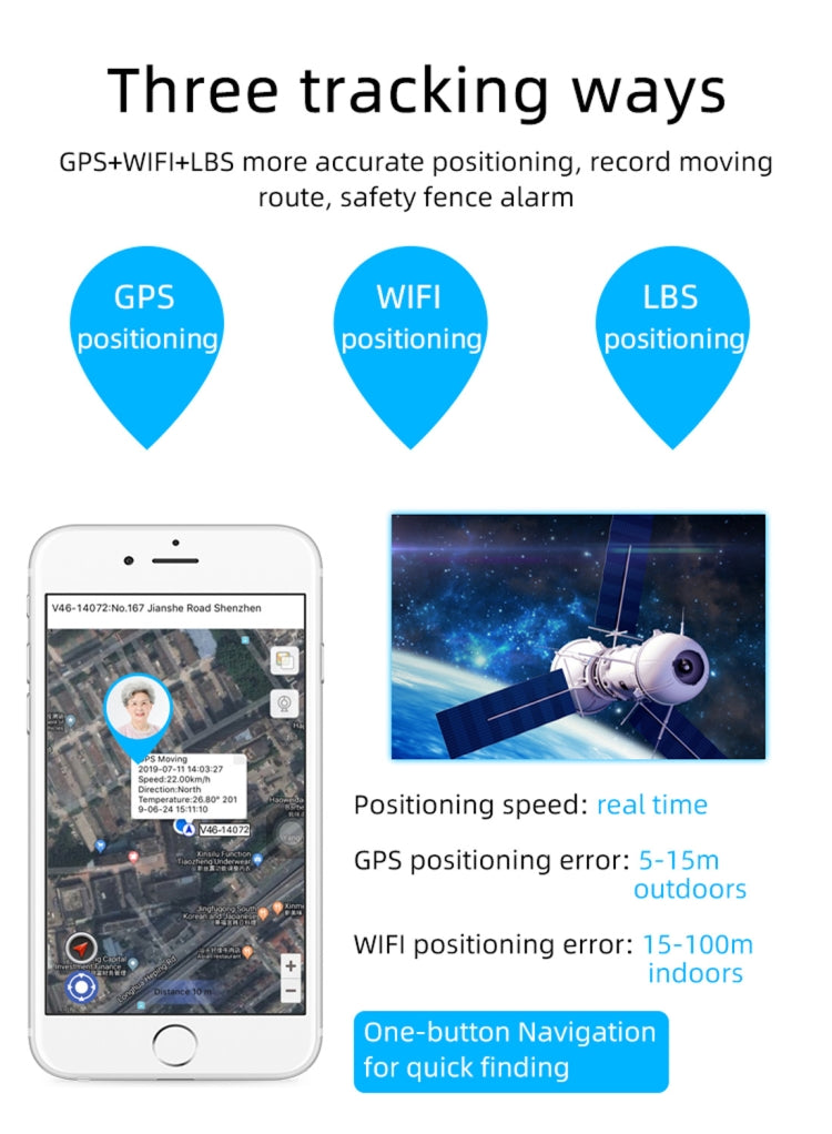 4. WIFI positioning accuracy: 15-100m(Under WIFI range