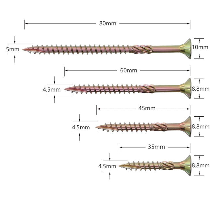 RUITOOL T25 100pcs Woodworking Screws Torx Self Tapping Screws