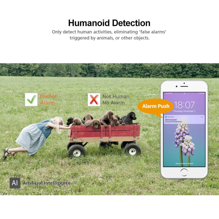 Sricam SP028 1080P HD Outdoor PTZ Camera, Support Two Way Audio / Motion Detection / Humanoid Detection / Color Night Vision / TF Card, US Plug