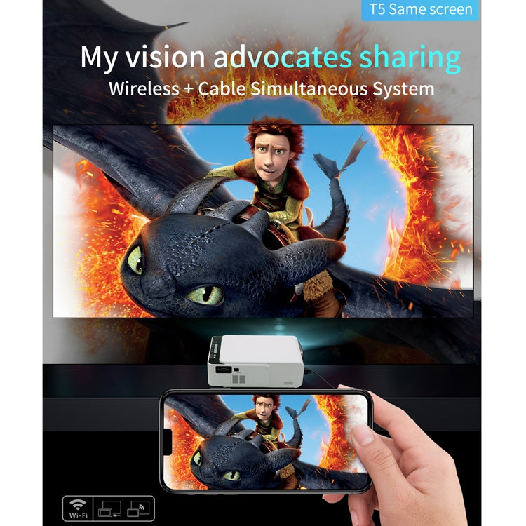 T5 100ANSI Lumens 1024x600 Resolution LED+LCD Technology Smart Projector, Support HDMI / SD Card / 2 x USB / Audio 3.5mm, Same Screen Version