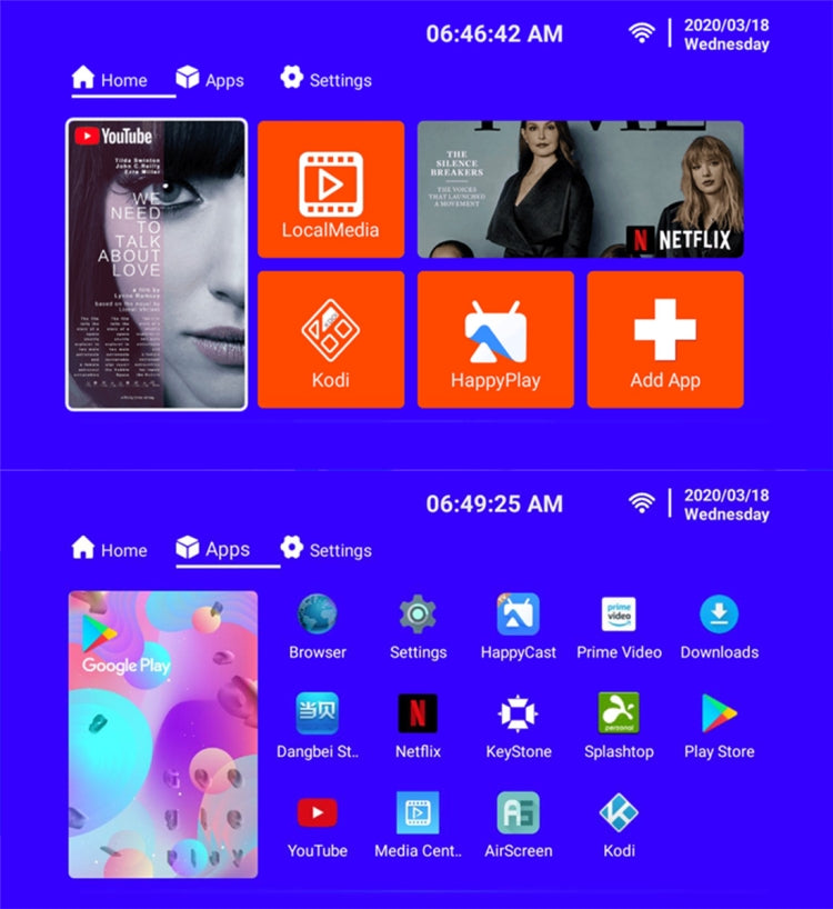 T6 2000ANSI Lumens Mini Theater Projector, Android 7.1 RK3128 Quad Core, 1GB+8GB, US Plug