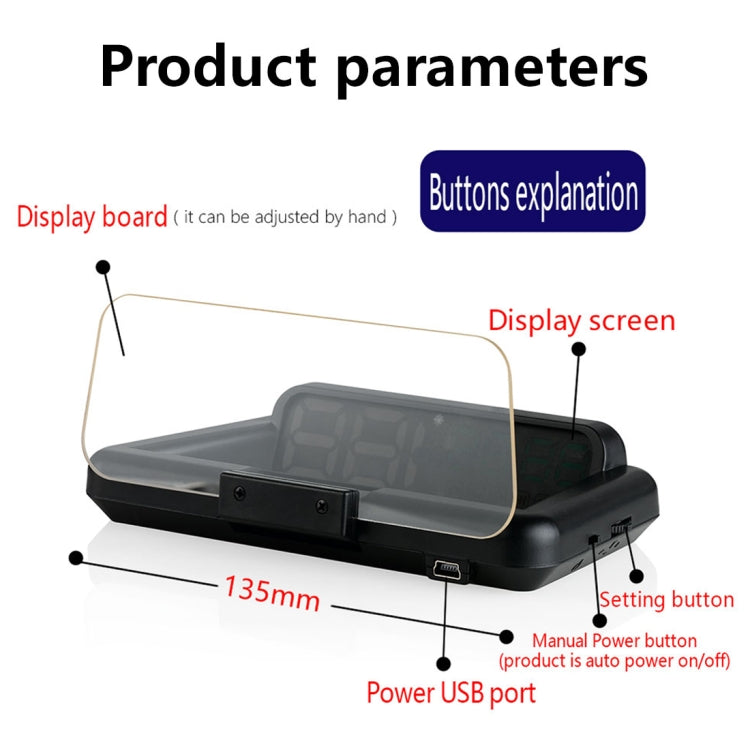 1. Comes directly projected on the projection panel, no ghosting, no reflection film, daytime show more clearly from the virtual image, the projection angle adjusting plate. No double image, no need stick the reflection film on the windshield, new display version