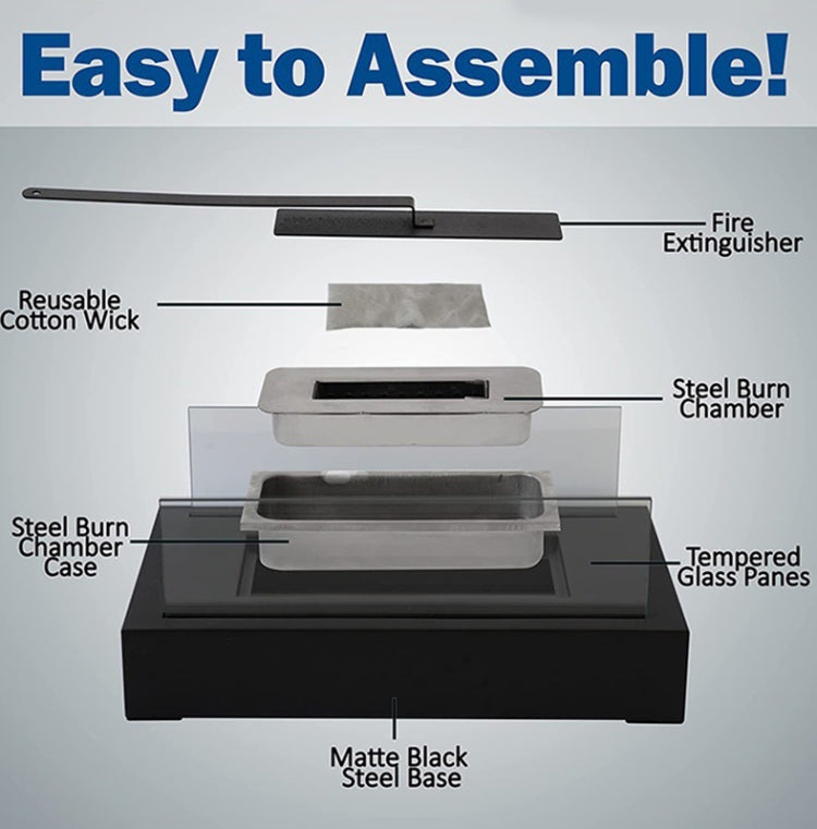 1. The matt black steel base helps to dissipate the heat generated by the flint and protects your table and surfaces from the heat generated by the fire.