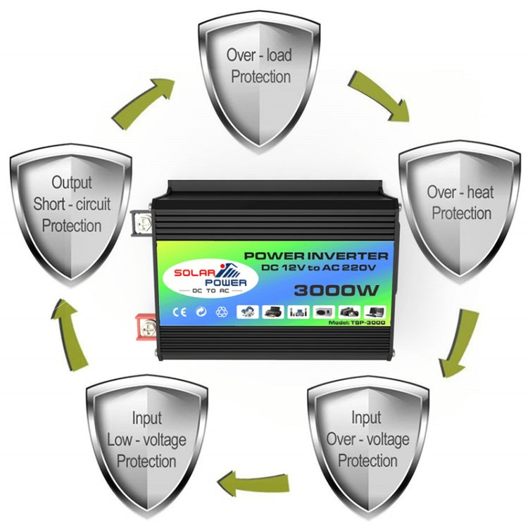 Tang I Generation 12V to 110V 3000W Intelligent Car Power Inverter with Dual USB