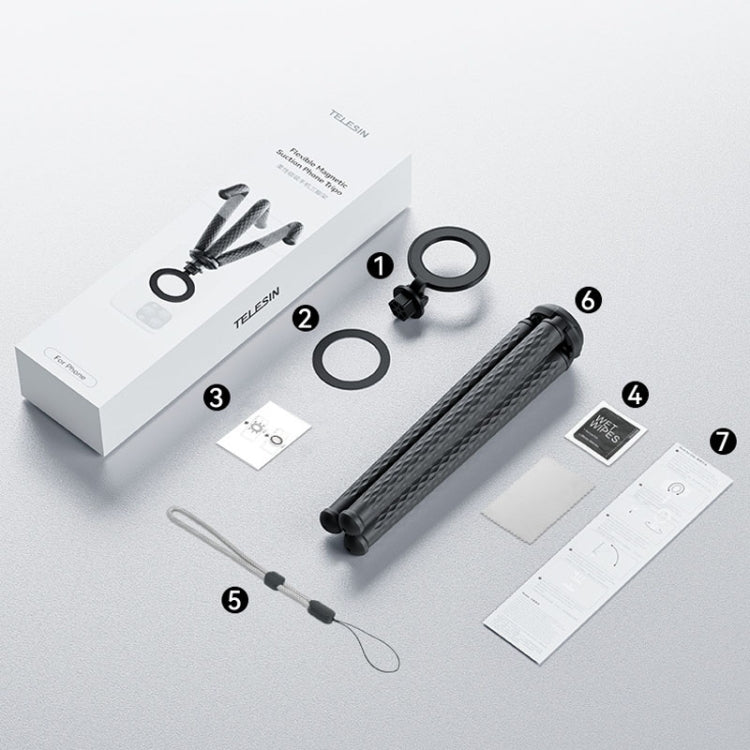 TELESIN P3-FM-02 Flexible Magnetic Suction Mobile Phone Tripod Magsafe Octopus Desktop Fixed Bracket
