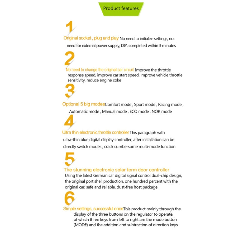 1. Sports mode: This mode will bring very strong sense of controlling the vehicle when driving, it is more suitable for the passionate drivers.