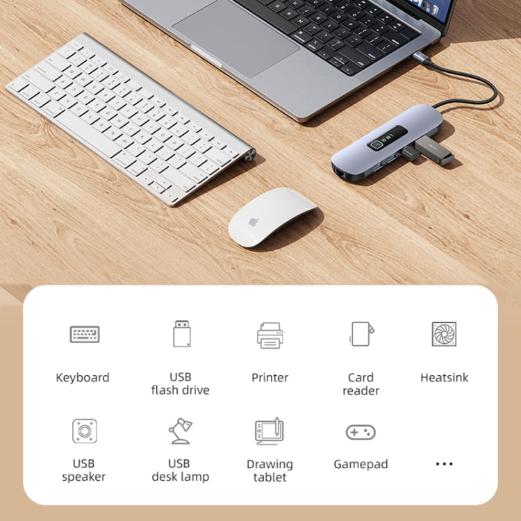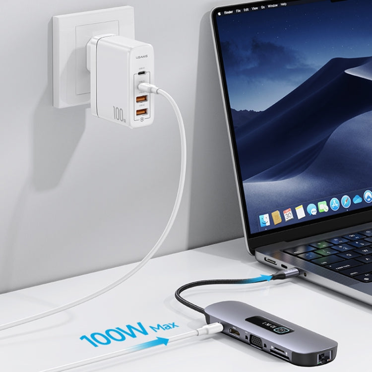USAMS US-SJ644 PD100W 10 in 1 Aluminum Alloy Multifunctional Type-C HUB with Light