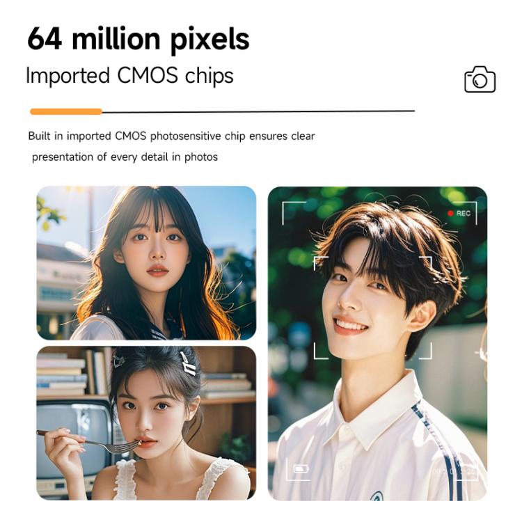 1. 64 megapixels, imported CMOS photosensitive chip, 4K high-definition video recording